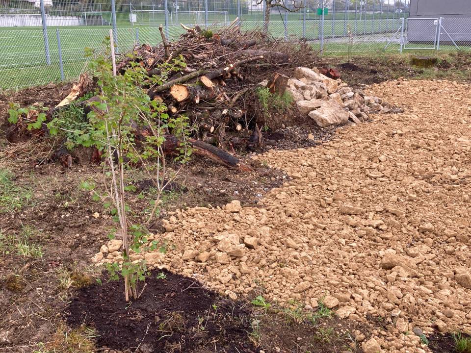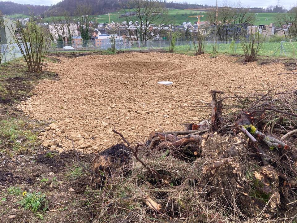 Fotogalerie Umsetzung 3. Etappe Grüne Siedlung Lausen / Erneuerung Versickerungsanlage MZH Stutz (Fotos vom 12.04.2024 und 09.07.2024)