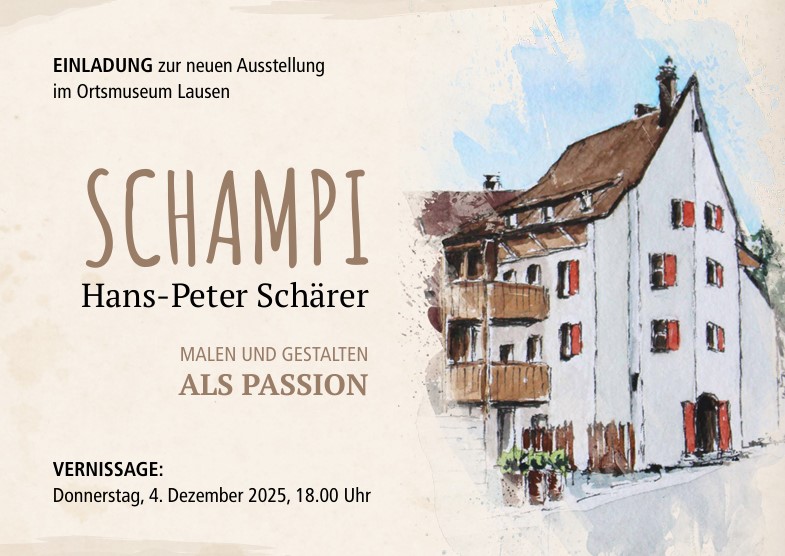 Neue Ausstellung (EG) mit Werken von Hans-Peter Schärer, in Lausen besser bekannt als „Schampi“.